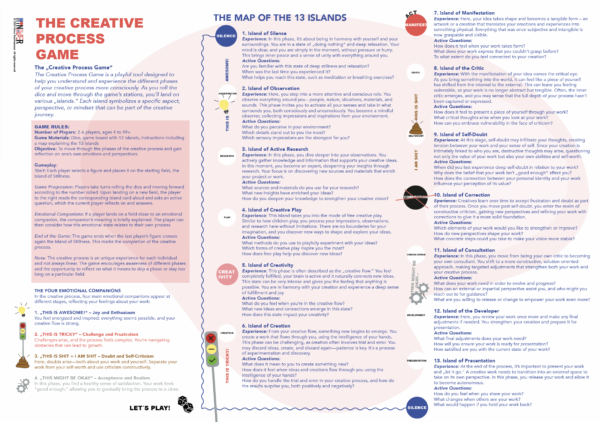 Lade dir jetzt das CREATIVE PROCESS GAME kostenlos herunter und beginne, deinen kreativen Prozess zu Hause zu entdecken!